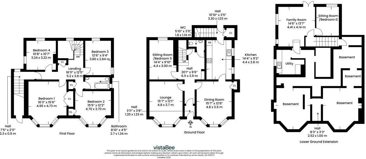 The accommodation is arranged over three levels and provides an outstanding degree of flexibility to suit a wide range of family needs, including those seeking dedicated work-from-home space. Ground Floor - Entrance vestibule, Welcoming reception hall, WC, Generous lounge, Elegant dining room, Newly installed contemporary kitchen,Sitting room/Bedroom 5. First Floor - Spacious landing, 4 double bedrooms, Family bathroom with shower. Basement Level - Family room with French doors opening to the garden, Sitting room/Bedroom 6, Utility room. Extremely large basement area. EPC - C. Council tax - F. Size- 198 Square Metres. Freehold.